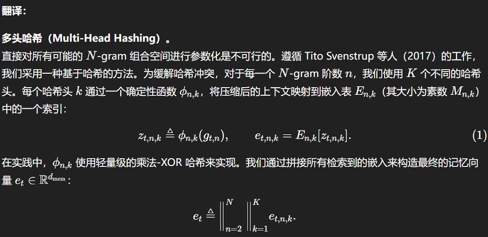 我们又让ChatGPT(GPT-5.2)、ChatGPT Translate和谷歌翻译分别翻译了DeepSeek最近发布的Engram论文中的一段话。由于不是所有工具都支持文件翻译,为公平起见,我们采取将内容直接复制为文本,并粘贴翻译的方式。