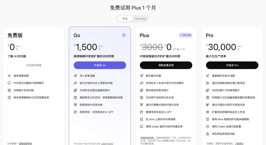 Plus (20 美元):进阶级,支持 GPT-5.2 Thinking 和 Codex,适合深度推理。