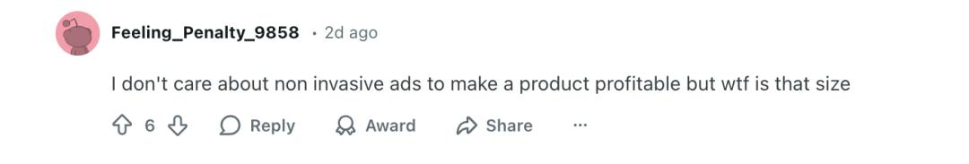 有的吐槽广告太大,觉得看着不舒服。