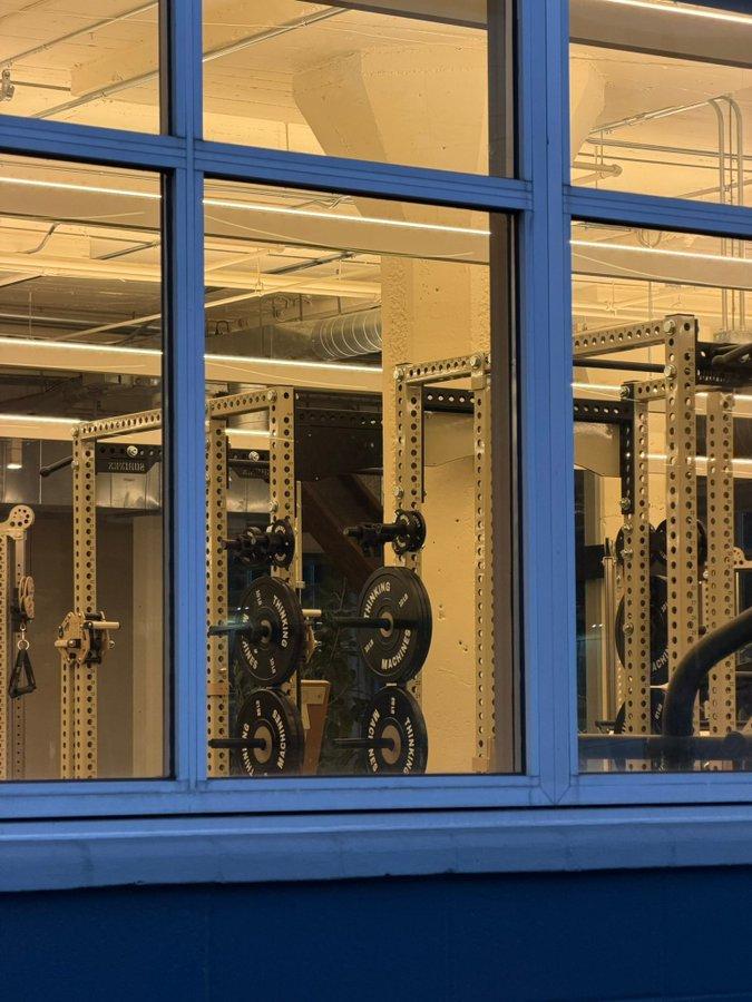 其次,基于薪酬、津贴或团队获得的算力多少而产生的嫉妒和等级秩序更少,而这些往往是有毒的,却根植于人性之中。 你的组织瞬间变得扁平,并且可以保持扁平。伴随外部资金而来的不仅是商业模式的期望,还有估值、股票期权,以及一个高估值AI实验室所有的浮华装饰,无论这种估值在早期是多么没有意义。来自梦幻估值的纸面财富往往会让位于膨胀的自我价值感、嫉妒,以及被资金更雄厚的竞争对手挖角。这些浮华装饰不仅仅关乎个人财富创造,还与实验室的品牌、声望和吸引更多人才的魅力捆绑在一起。而这些装饰可能会变得相当荒谬,比如该实验室办公室健身房里那些印有“Thinking Machines”品牌的杠铃片: