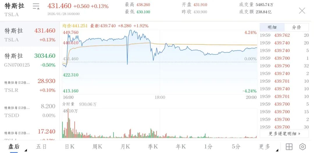 这份财报公布于收盘后,而特斯拉的盘后股价也一度涨超4.2%,市值增长608.7亿美元。