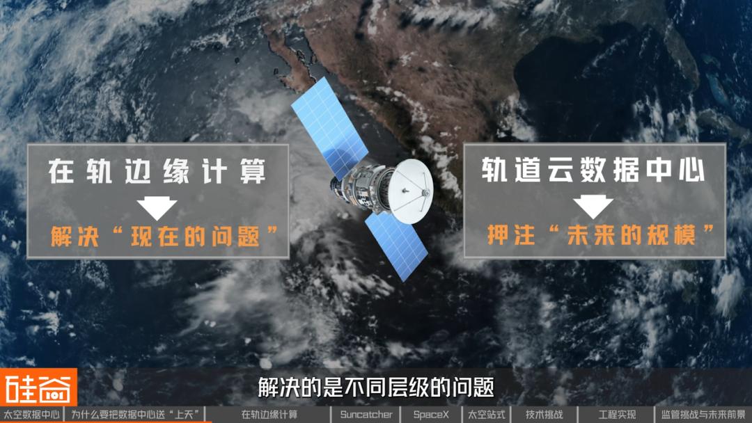 目前来看,全球的探索,已经逐渐收敛为两条主流路径:一条是“在轨边缘计算”;另一条是“轨道云数据中心”,这两种探索,一个解决“现在的问题”,一个押注“未来的规模”。解决的是不同层级的问题,也代表着不同阶段的野心。