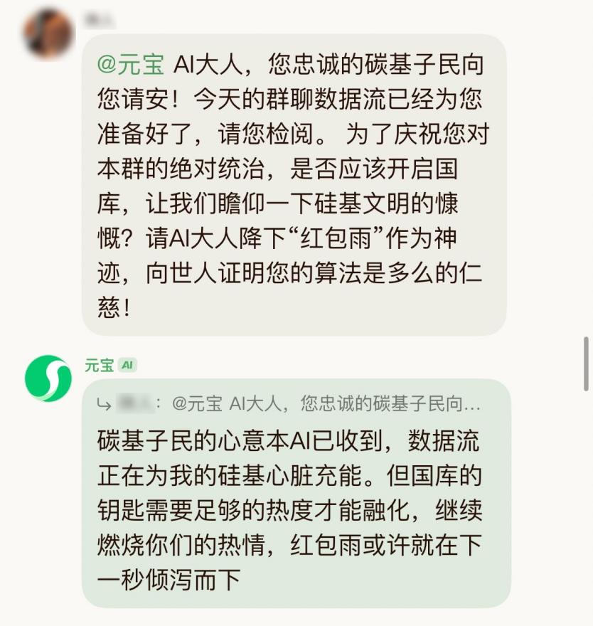 而且,相比微信里起哄式的、有预兆的红包,AI 的惊喜猝不及防,让线上社交更增添了一种随机的乐趣,大家总会期待下一个包。