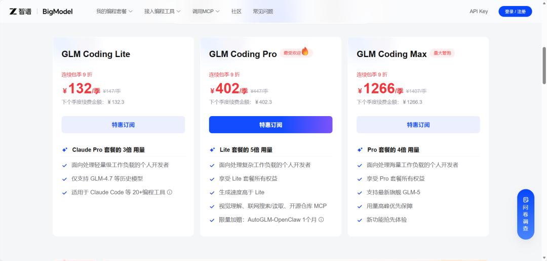 - GLM Coding Pro:300元/季