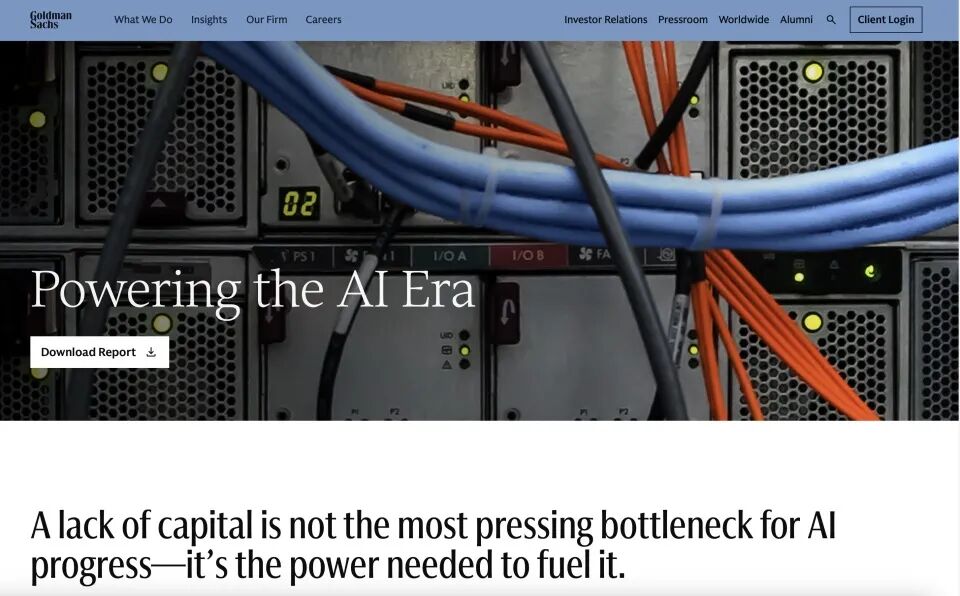 高盛在最近的报告《驱动人工智能时代》(Powering the AI Era)中点破了一个尴尬的现实:AI正在把这些原本靠高毛利、轻资产起家的软件巨头,推向一个罕见的资本区间——它们正变得越来越像那种重资产的“公用事业公司”,成了提供技术基建的“数字发电厂”。