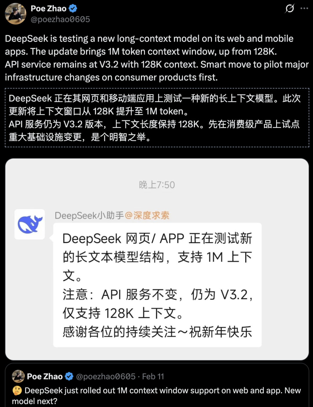 而且,据说DeepSeek新模型的官方发布时间,已经被推迟到了三月底。