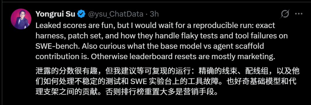 另外,就算泄露的分数很惊人,但真正有说服力的,是可复现的运行细节。