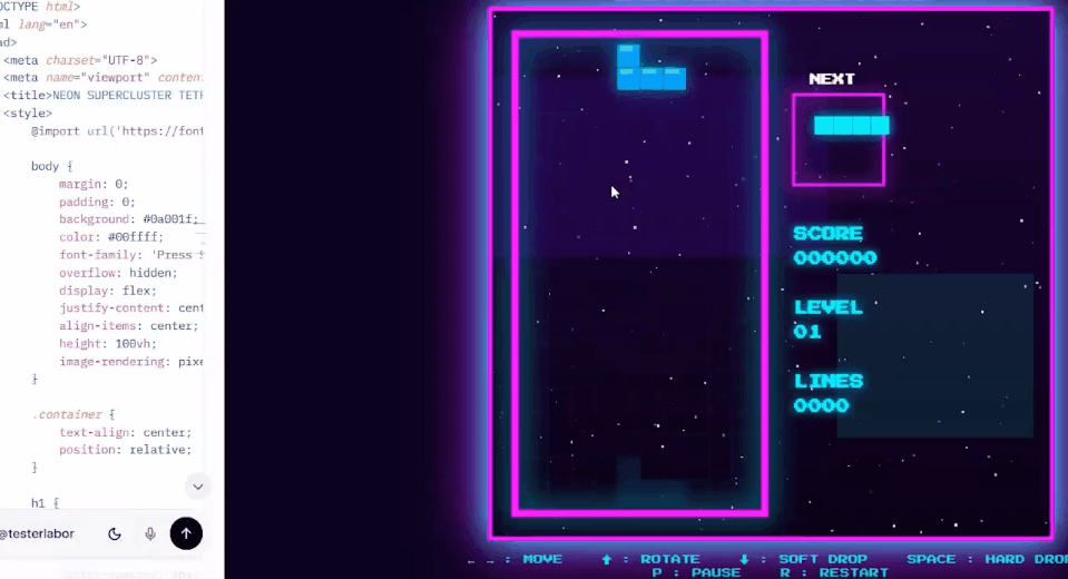 网友Testlabor用Grok 4.20在1分20秒内为编写了一个俄罗斯方块游戏。