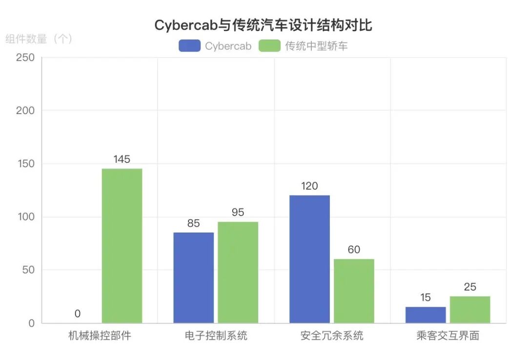 全球出行数据统计显示:超过90%的日常出行场景,车内乘客不超过两人;95%的出行里程在100公里以内。Cybercab正是基于该洞察,采用双座布局、小容量电池(<50kWh)、极简车身设计,不追求大空间、长续航、多配置,而是把每一分成本都花在刚需上,把每一寸空间都用在实用上。此类「场景原生」的设计哲学,让Cybercab从诞生之初就具备了商业化盈利的基础。