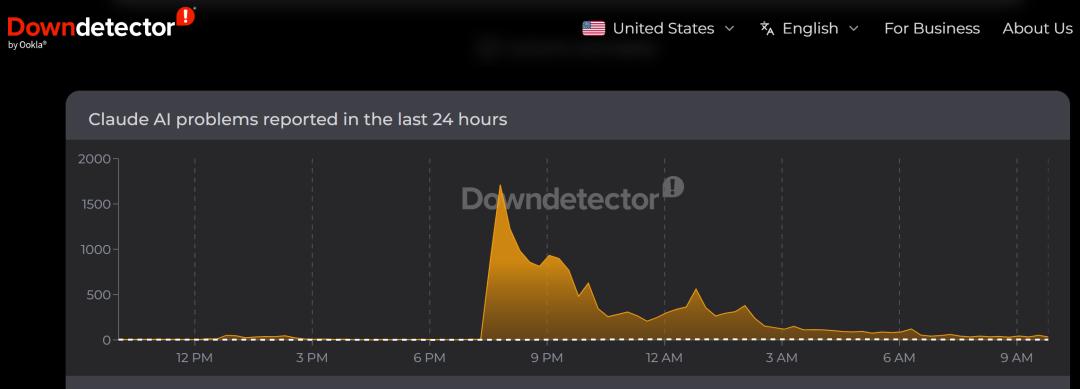 据服务监测网站 Downdetector 数据,其故障高峰期有近 2000 名用户报告 Claude AI 服务异常。Anthropic 通过 WhatsApp 发表声明称,claude.ai 官网及公司旗下应用等面向消费者的服务端口均已下线,而将 Claude AI 模型集成至自有系统的企业客户则未受影响。