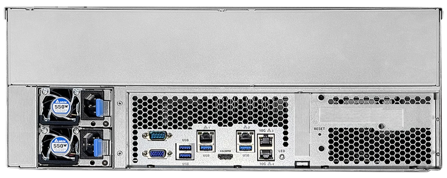 其拥有 4 个 DDR5 UDIMM 内存插槽,至高支持 192GB ECC 内存,预装 16GB DDR5-4800 ECC;预装 32GB SATA DOM;采用一对 550W 白金冗余电源供电;安装有四颗 60mm 散热风扇;提供 4 个 USB-A 5Gbps 接口和 1 个用于服务的 HDMI 接口。