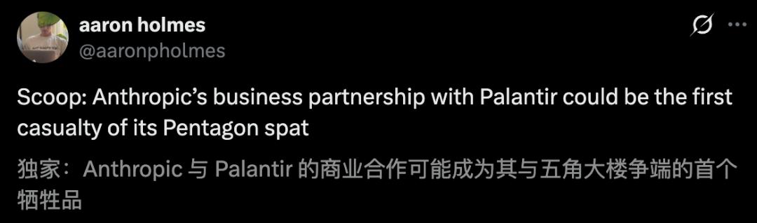 这不,Information独家爆料,Anthropic与Palantir的合作,可能成为这场争端的「首个牺牲品」。