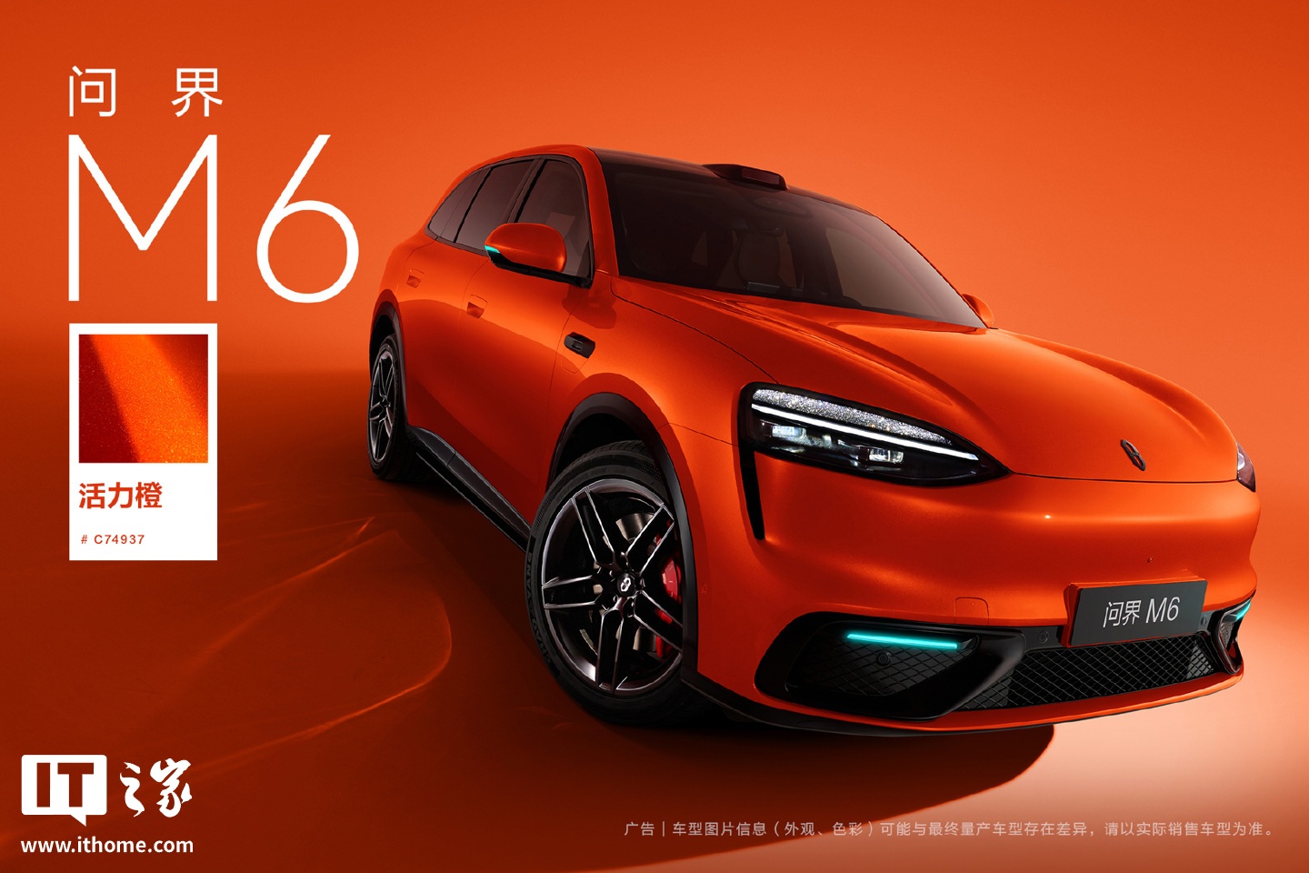 IT之家注意到,鸿蒙智行官方今日还发布了问界 M6 全新「活力橙」配色的官图。从官方的图片来看,该车的雷达造型偏扁平,与此次发布的华为乾崑新一代双光路图像级激光雷达外观相近。