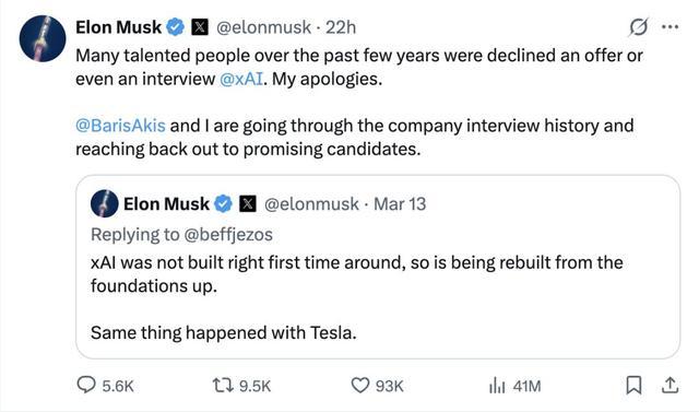 “xAI第一次没建对,现在要从基础重建。(xAI was not built right first time around, so is being rebuilt from the foundations up.)”
