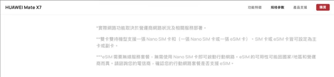 而在 Mate 系列仅有最新的折叠屏手机 Mate X7 支持 eSIM 功能。