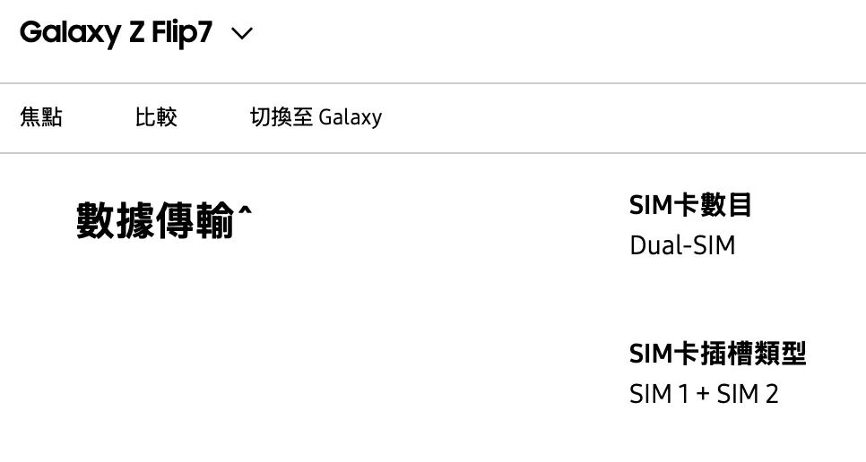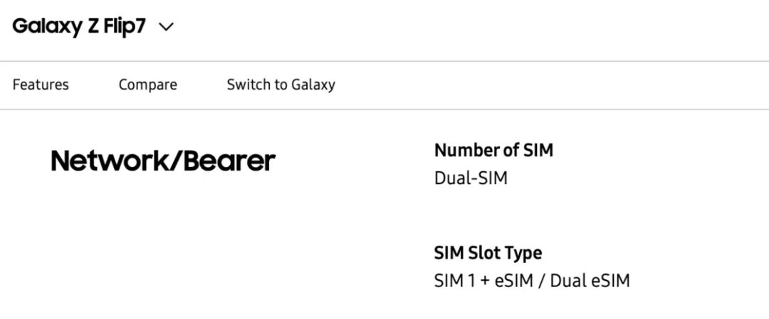 目前,除港澳台地区在售的 Galaxy 手机外,所有其他地区销售的版本均支持 eSIM 功能。但不同于 iPhone 或 Pixel 相对激进的策略,三星在除 Z Flip7 外的所有型号上配备了双实体 SIM 卡槽,主打一个「全都要」。而 Z Flip7 配备了单实体 SIM 卡槽,所有机型均支持 eSIM 双待。