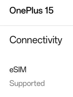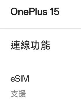 一加 15 和一加 13 均支持 eSIM 功能,配备双实体 SIM 卡槽。