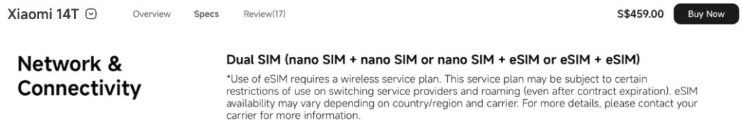然而官网描述极为有限,eSIM 是否支持双待不明。