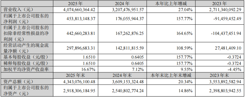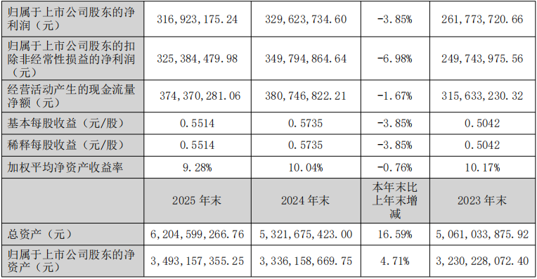 2025年公司营收增长主要来源于磷酸业务收入的增长。归属于上市公司股东净利润增长的主要原因是市场行情向好及公司柔性生产优势与成本管控能力的进一步提升。经营性现金流量净额2.98亿元,同比增长108.59%。