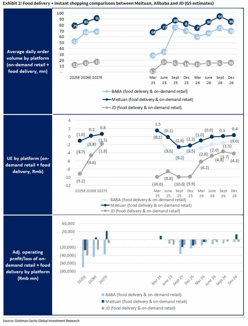 即时零售(淘宝闪购)收入208亿元,同比增长56%。正在按计划向FY28万亿GMV目标迈进。UE(单位经济效益)逐季改善,蒋凡首次给出盈利时间表:FY29实现整体盈利。