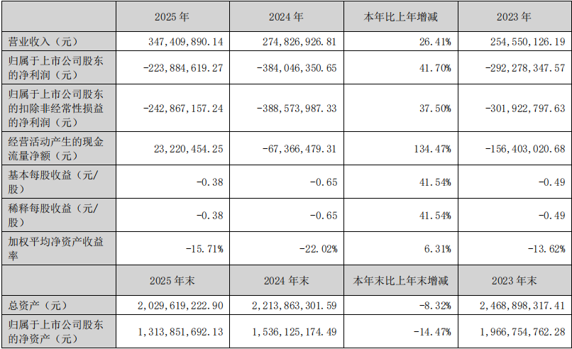 3月26日,浙江大立科技股份有限公司正式发布2025年年度报告。报告显示,公司2025年度实现营业收入34,740.99万元,同比上升26.41%;归属于上市公司股东的净利润为-22,388.46万元,同比减亏41.7%;扣除非经常性损益后的净利润为-24,286.72万元,同比减亏37.5%。