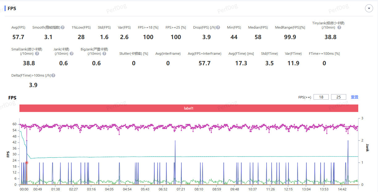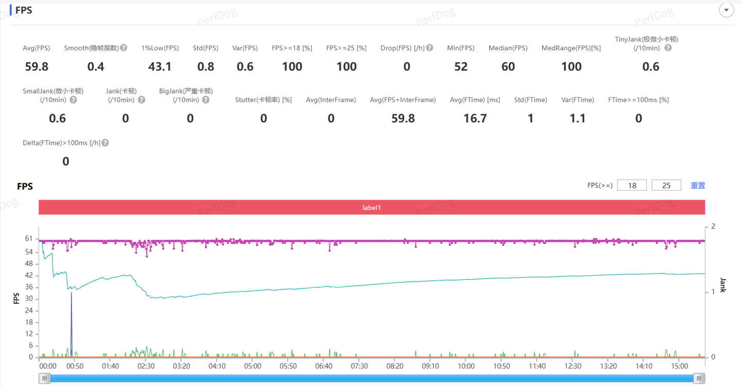 最后IT之家还用《燕云十六声》做了测试,在极致画质下帧率开到极限,然后在对 CPU 压力考验很大的开封主城进行 15 分钟跑图测试,得到平均帧率为 59.8 FPS,帧率的波动也不明显,偶有小波动,不影响游戏体验。