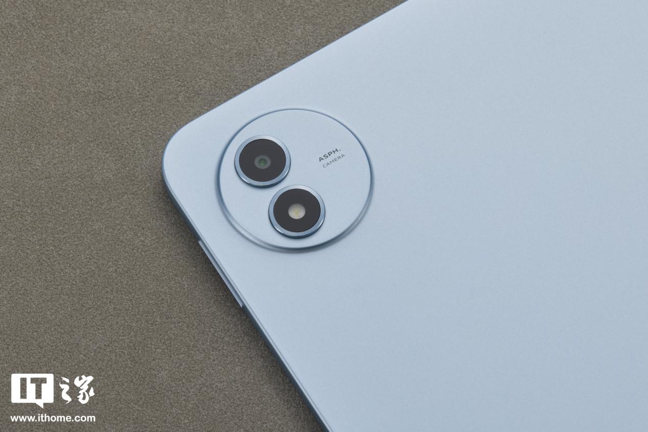 IT之家拿到的这款为松弛蓝配色,这种蓝色色泽淡雅,视觉上能带来轻松、治愈的感觉。平板采用一体化的铝合金外壳,表面为细腻的喷砂质感,搭配这种蓝色,减少了金属的锐利视感,增加了温润感。