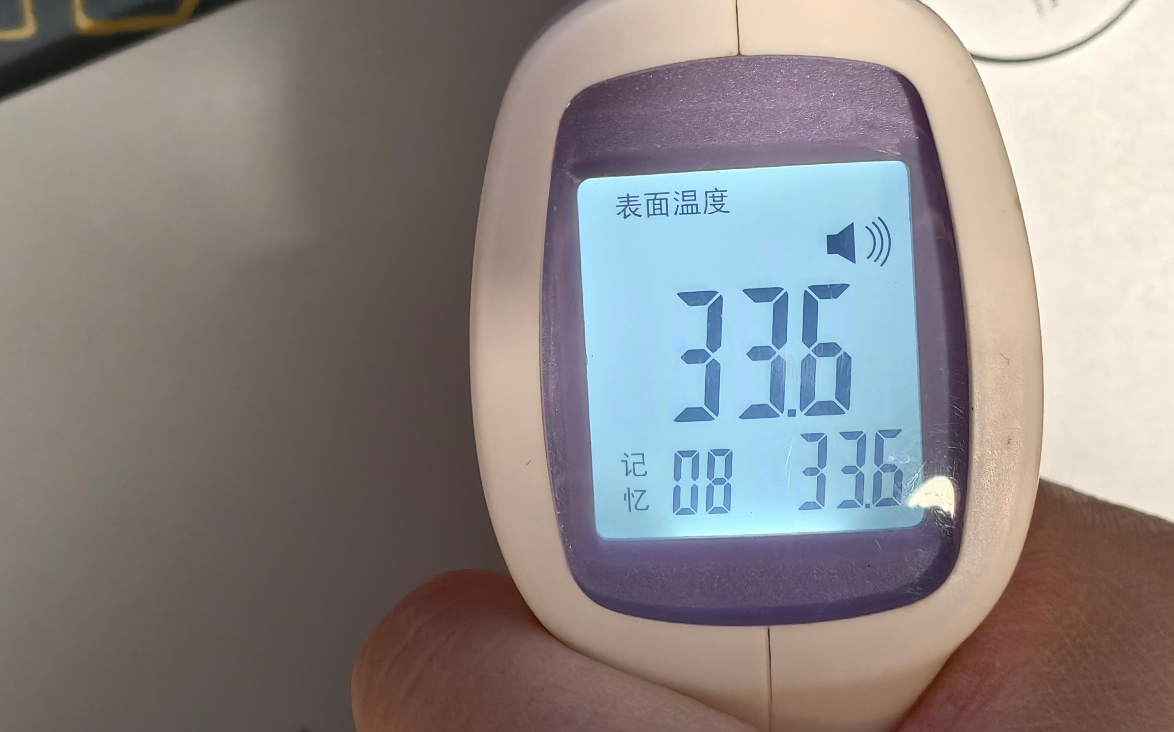 测得机身温度最高为 33.6℃,温度也不高,平板散热好的优势尽显。