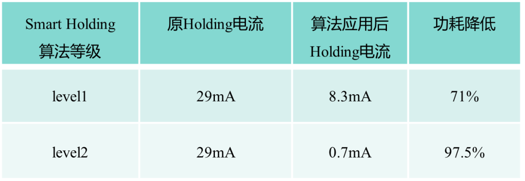 在类滚珠马达应用场景,由于维持一个保持电流抵抗不必要的静摩擦力产生的功耗损失,艾为开发了SmartHolding智能算法。该算法通过创新的算法控制环路机制,显著降低不必要的用于抵抗静摩擦力的驱动电流,进而显著降低功耗。