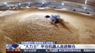 据平仓机器人研发团队负责人郭凤民介绍,一座 1400 多平方米的粮仓,传统人工平仓需要三人耗时三天完成,而三台平仓机器人协同作业不到一天即可完成。