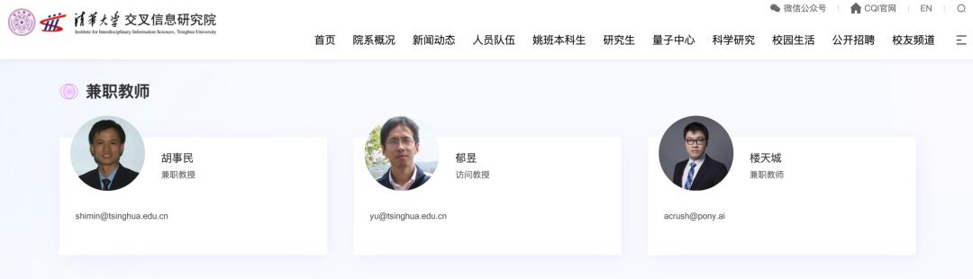 此外, 图灵奖得主姚期智院士本硕博嫡传大弟子——楼教主楼天城,既是小马智行担任联合创始人兼CTO,也是清华叉院的三位兼职教师之一。