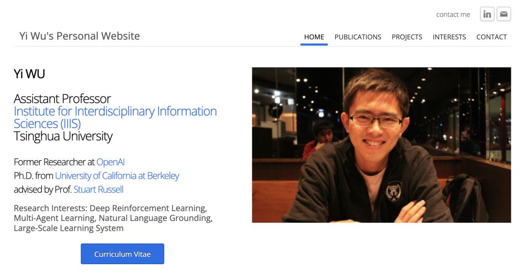 不过在他的个人主页与谷歌学术页面上,依旧保留着 “清华大学交叉信息研究院助理教授” 的字样。