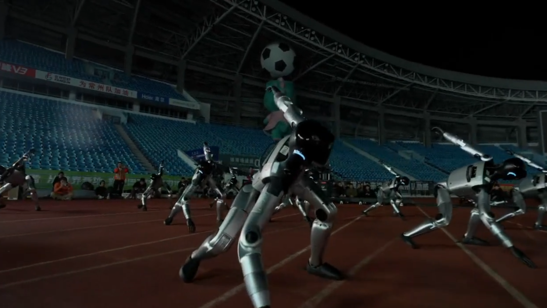 今年苏超首次引入了机器人集体表演,来自江苏本土的具身智能公司魔法原子用200台四足机器狗、90台人形机器人,完成了全球已知数量最大、规模最多、环境最复杂的户外群控表演。
