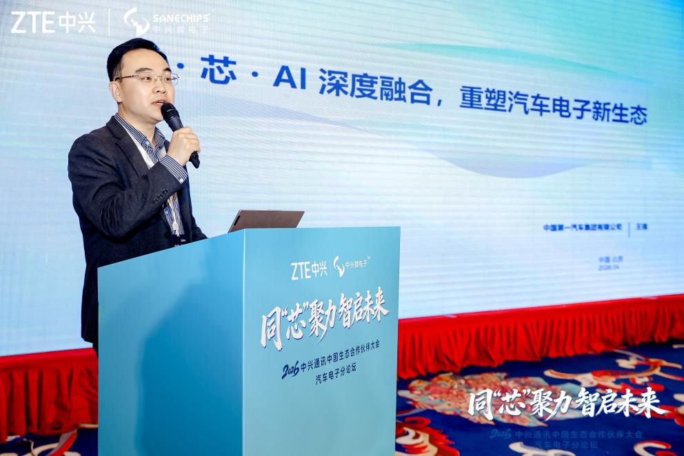 4月9日,2026中兴通讯中国生态合作伙伴大会汽车电子分论坛在北京丰大国际大酒店成功举办。本届论坛以“同芯聚力,智启未来”为主题,汇聚中国一汽、广汽集团、上汽集团、东风汽车、长安汽车、奇瑞汽车、北汽集团、理想汽车、吉利汽车等主流整车企业,以及经纬恒润、东软睿驰、延电科技、联合电子、航盛电子、立昇科技、富赛汽车电子、斑马智行、车联天下、北斗智联等十多家知名一级供应商。与会的近50位领导与专家围绕智能汽车时代下车规芯片、AI与系统协同的产业趋势与生态共建路径展开深度研讨,共同描绘“车·芯·AI”深度融合的技术演进与生态发展新蓝图。