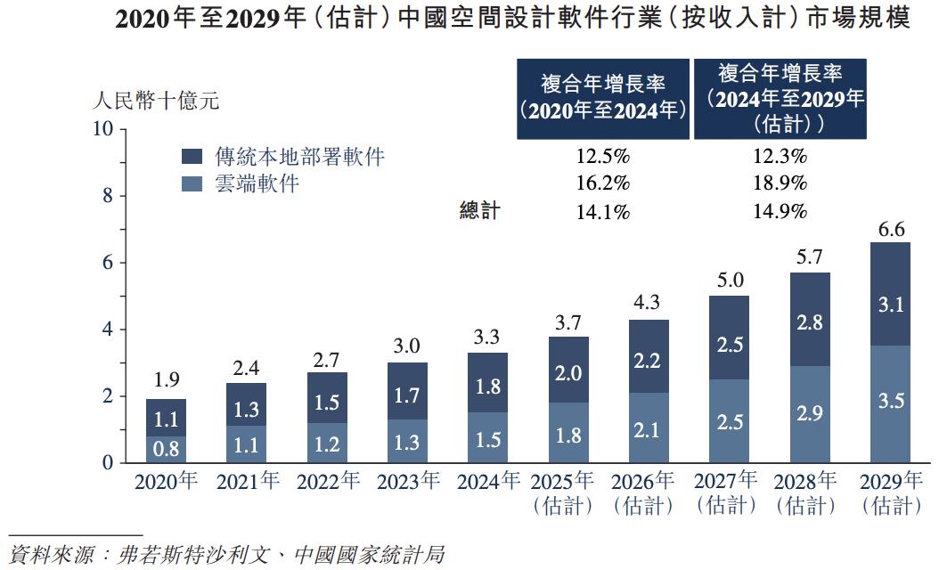 然而,该赛道限定了公司的增长边界。群核科技在空间设计软件领域虽以23.2%的市占率排名第一,但这一市场的整体规模有限,2024年中国空间设计软件市场规模仅33亿元人民币,即便到2029年预计也仅66亿元。