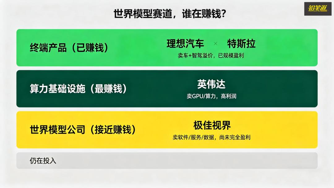 但问题来了:这条赛道里,谁已经赚到钱了?答案有点反直觉:并不是做世界模型的人,先赚到钱。