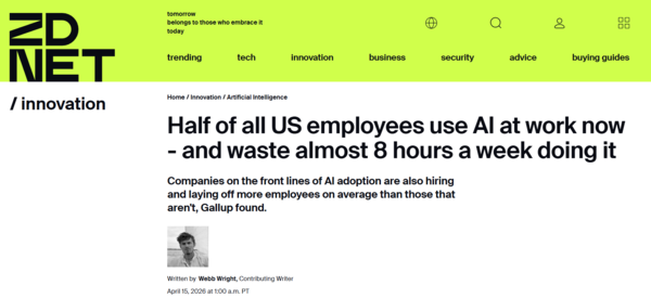 WalkMe数据显示,大量工作时间如今被耗费在仅试图使这些工具正常运作上。例如,许多员工每周花费时间将数据从一个工具转移至另一个工具,或反复调整提示词以产生期望的输出。所有这些零散时间累积起来,使用人工智能的员工平均每周浪费7.9小时(估算),相当于每年约51个工作日。