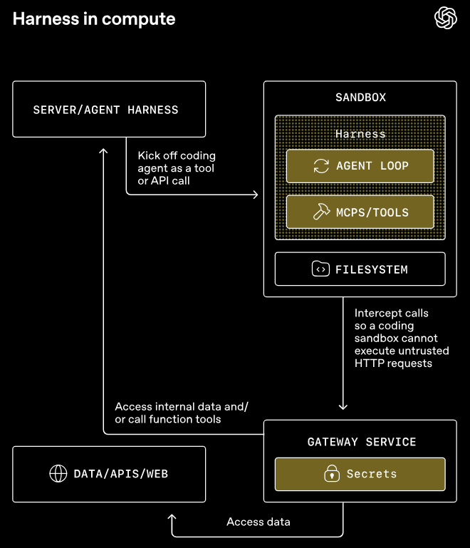 harness跑在你的可信基建里,管模型调用、审批、追踪、运行状态。compute是一个独立的沙盒,专门负责读写文件、跑命令、装包、吐产物。
