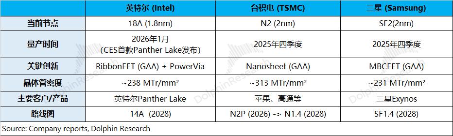 c)代工市场的竞争:在台积电2nm开启量产之后,三星和英特尔也紧跟着分别进入了SF2(2nm)和18A(1.8nm)节点。