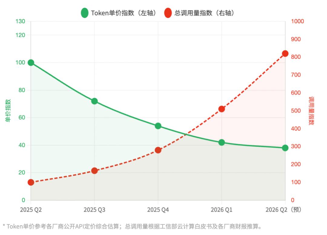 注:2025Q2 = 基准100 | 主要中国云厂商推理API综合估算