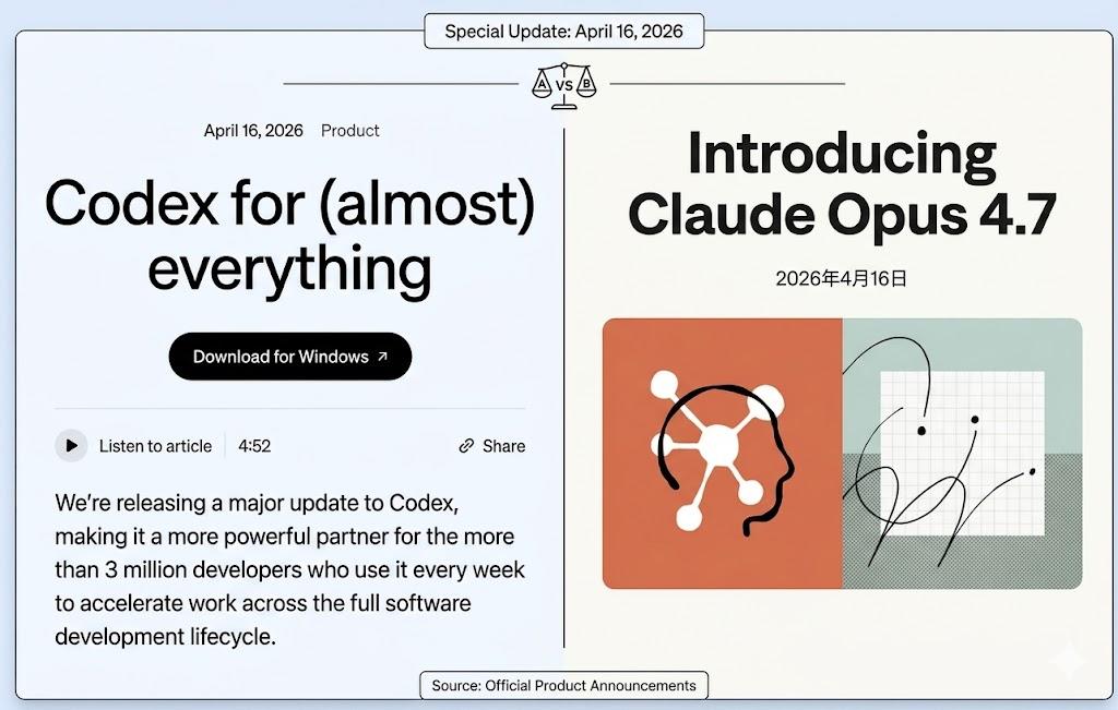4月16日,AI行业又闪过了有趣的一天,也许,改变又开始萌芽了。Anthropic 发布的是一个更强的代码模型,OpenAI 发布了一个更大的野心。