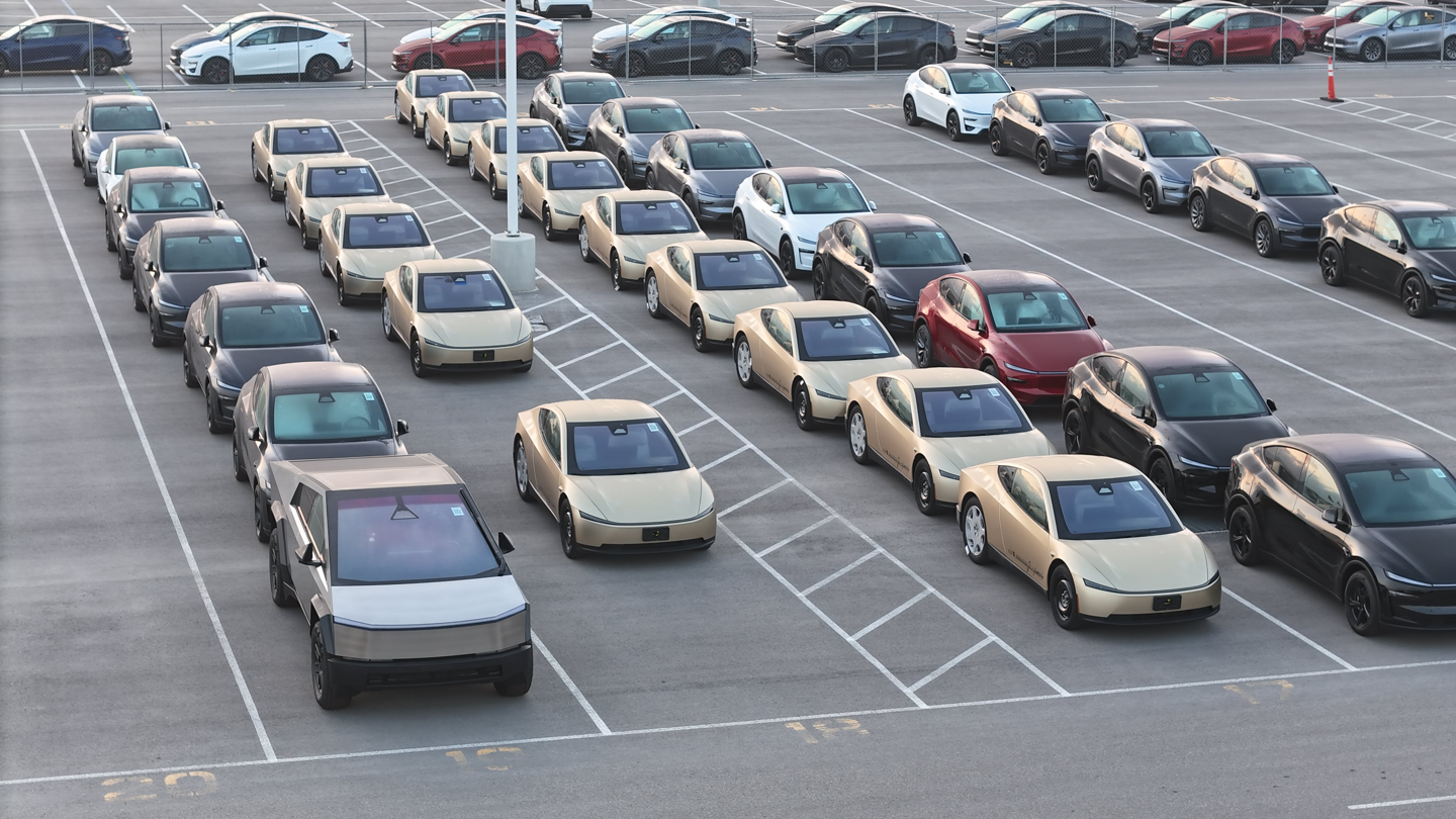 相比之下,此前在碰撞测试区域出现的测试车曾配备临时方向盘和踏板,以满足数据采集阶段的监管要求。此次出厂区的车辆则已采用量产规格,包括轮圈和轮胎标识,整体状态接近可交付。