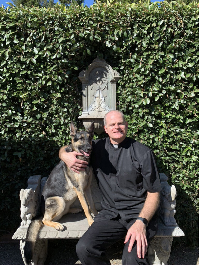 图注:教会新闻网页上,麦神父和他养的德牧一起出镜