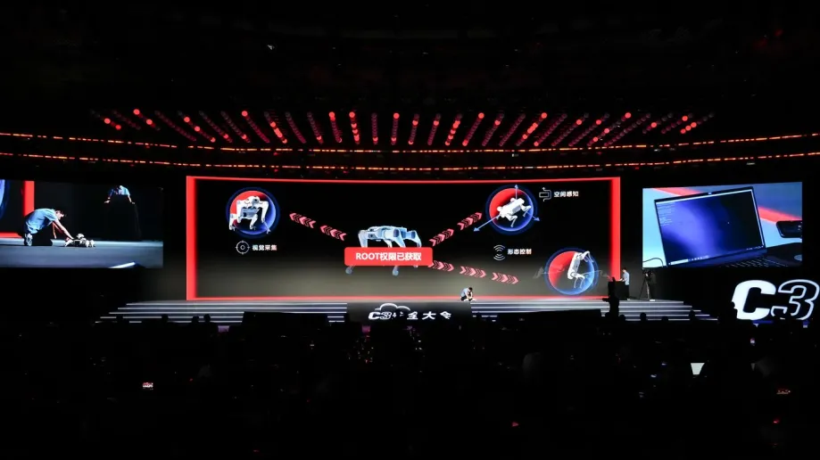 随着大模型与智能体的普及,网络攻击面正由传统资产向人工智能资产转移。亚信安全CEO马红军透露,新发布的AI XDR 2026实现了安全防御的“AI原生”化,其核心是将安全平台升级为嵌入十大智能体的矩阵。该系统能够使企业安全运营总成本降低15%至30%,同时将高风险事件发现与闭环能力提升30%至50%,事件响应效率提升50%至70%。针对智能设备前沿应用,会议现场展示了机器狗劫持实战演练,直观揭示了具身智能在工业巡检、安防等场景下潜藏的安全盲区与被操控风险。