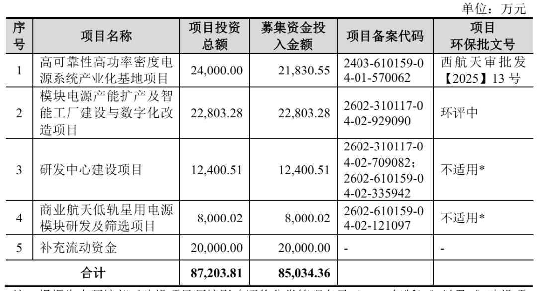 军陶科技曾计划募资8.5亿元,其中,2.18亿用于高可靠性高功率密度电源系统产业化基地项目,2.28亿用于模块电源产能扩产及智能工厂建设与数字化改造项目,1.24亿用于研发中心建设项目,8000万元用于商业航天低轨星用电源模块研发及筛选项目,2亿元用于补充流动资金。
