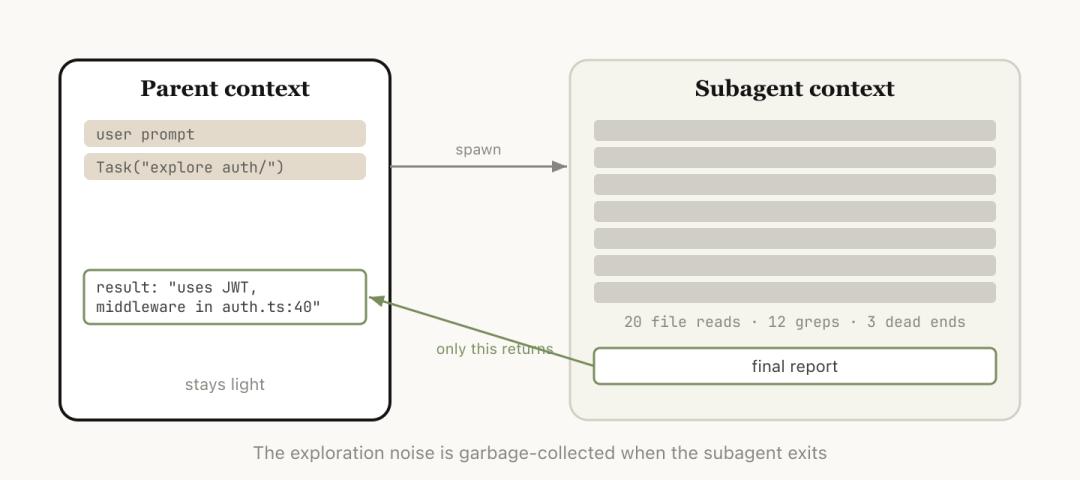 把一块工作交给一个拥有独立上下文的子智能体,干完活只把结论带回来。