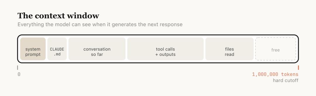 Anthropic解释道,上下文窗口是指模型在生成下一条回复时能够「看到」的全部内容,它包括你的系统提示、迄今为止的对话内容、每一次工具调用及其输出,以及所有已读取的文件。