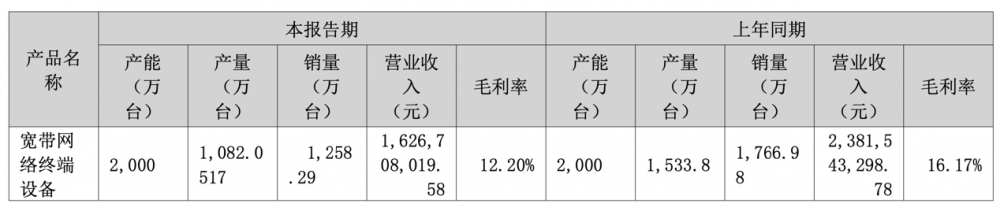 财报显示,天邑股份2023年宽带网络终端设备产能提升至2000万台,但“受行业整体需求疲软及产品价格下滑的影响 ”,产量同比下降26.84%、销量同比下降7.81%、营业收入同比下降16.03%,毛利率也小幅下降至17.14%。