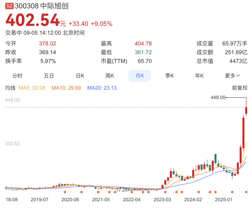 C114讯 9月5日综述(刘定洲)今年以来,以“易中天”中际旭创、新易盛、天孚通信为代表,“光通信”成为资本市场最受追捧的概念之一。一大批光通信相关上市公司股价飞涨,中际旭创市值一度超过4700亿元,跃升至创业板第2,并和新易盛联袂入选富时中国A50指数。