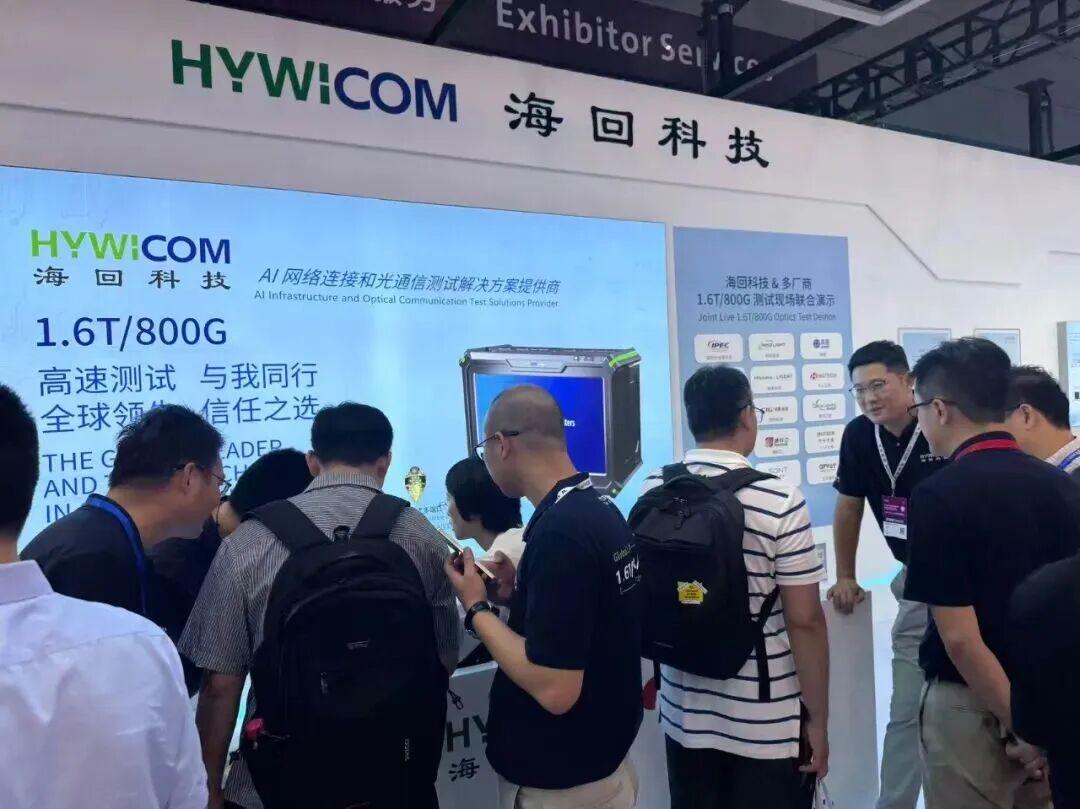 特别需要指出的是,海回科技在本次 CIOE 活动现场,携手 IPEC 国际光电委员会及近 20 家厂商进行 1.6T/800G 光模块测试现场联合展示,其测试设备已成为行业标配 —— 包括合作大量国际客户的诸多光模块厂商,其展台设备均搭载海回测试系统进行联合演示。
